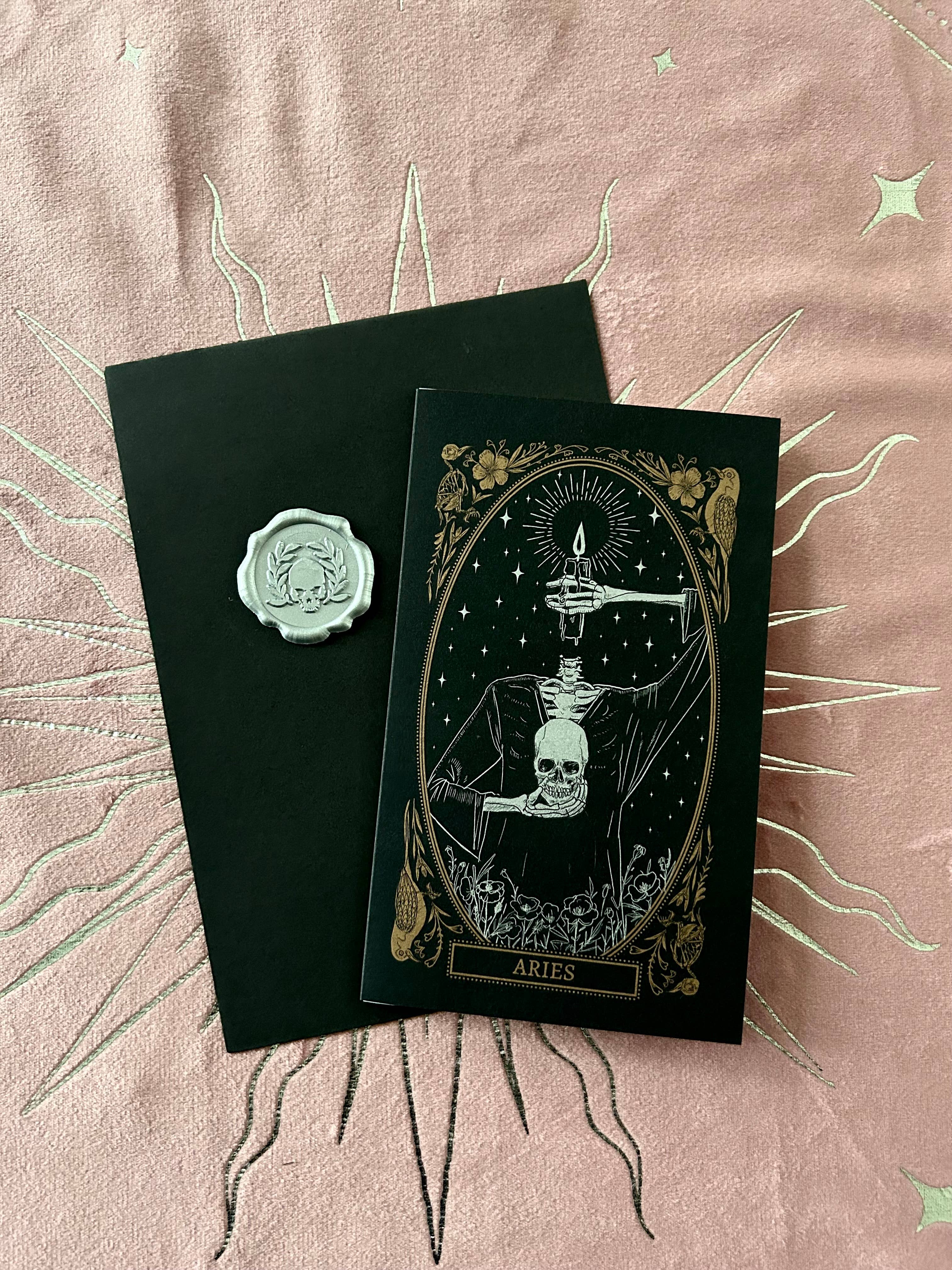 Greeting card featuring the Aries zodiac sign design from the Mirror Oracle deck.
